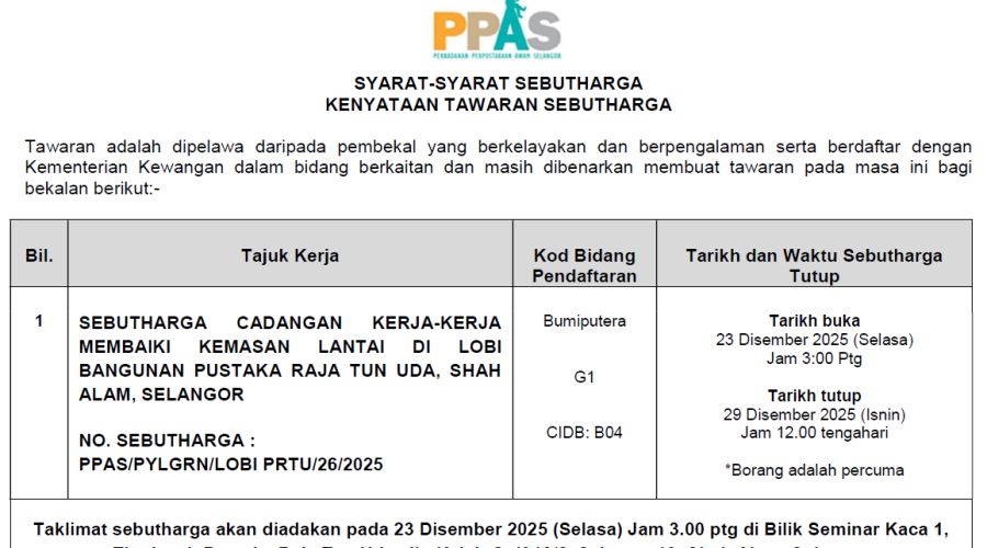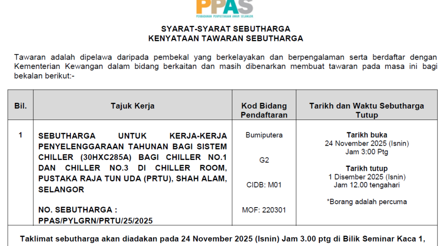 Sebutharga Membekal dan Menghantar Toner, Ink dan Cartridge Bagi Pelbagai Pencetak Untuk Perbadanan Perpustakaan Awam Selangor